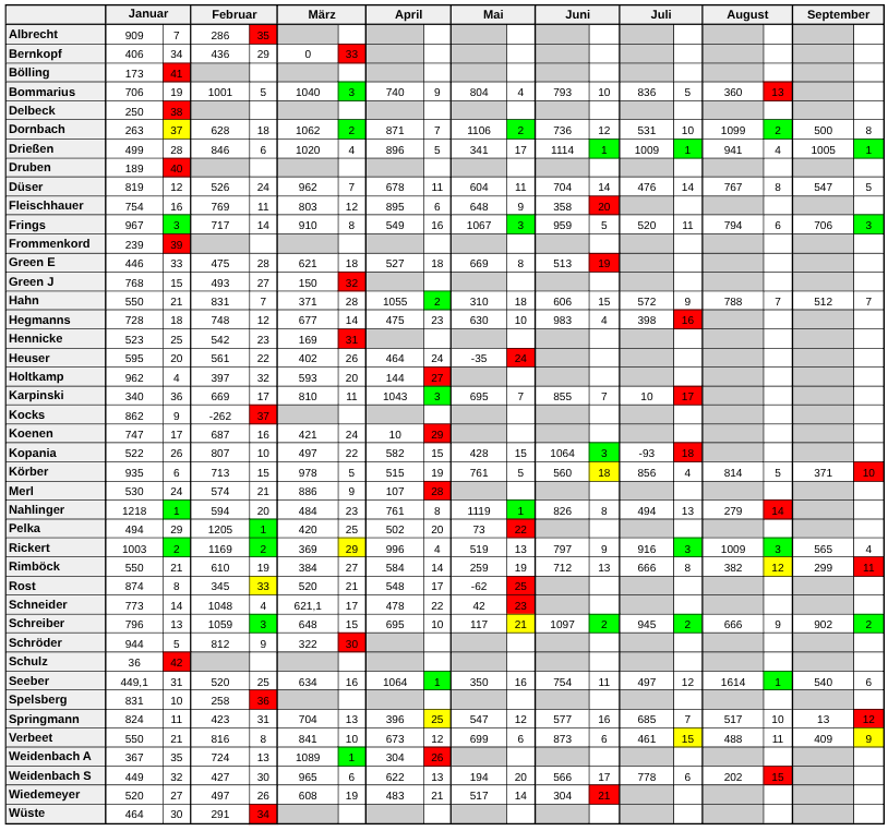 - Gunnar Springmann (13 Punkte, Platz 12)