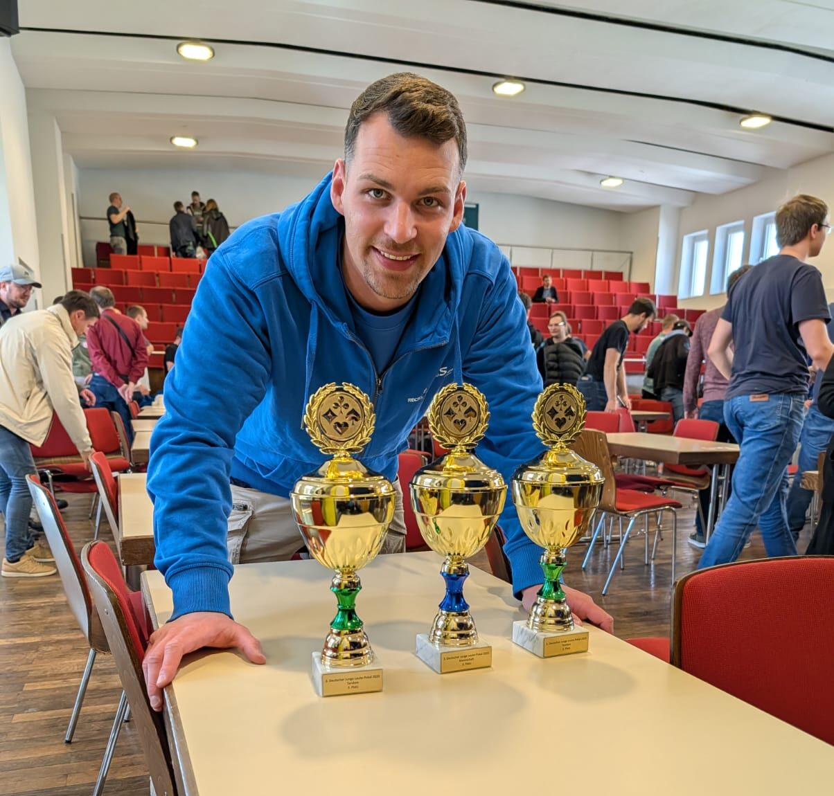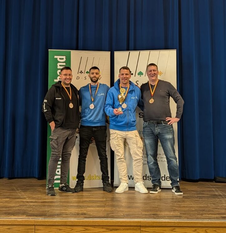 Die Mannschaft spielt eine solide Karte mit 48/2/19 und erreicht 4727 Punkte, ebenfalls Bronze. Die Pokale wurden überreicht und das Grinsen konnte man nicht mehr sein lassen.